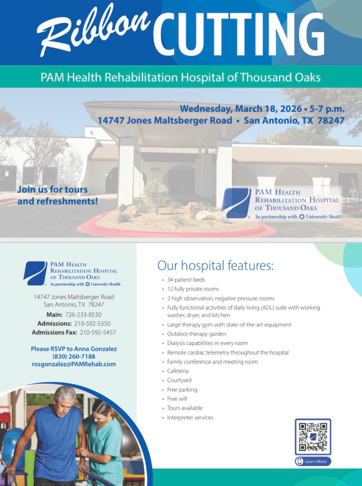 We would be delighted if you would attend and celebrate PAM Health Rehabilitation Hospital of Thousand Oaks with The Greater San Antonio Chamber family!