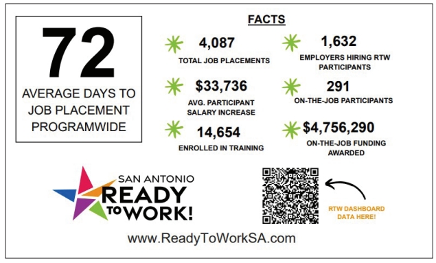Employers and individuals interested in participating in Ready to Work can learn more at sanantonio.gov/work- force and click on the QR code in the graphic.