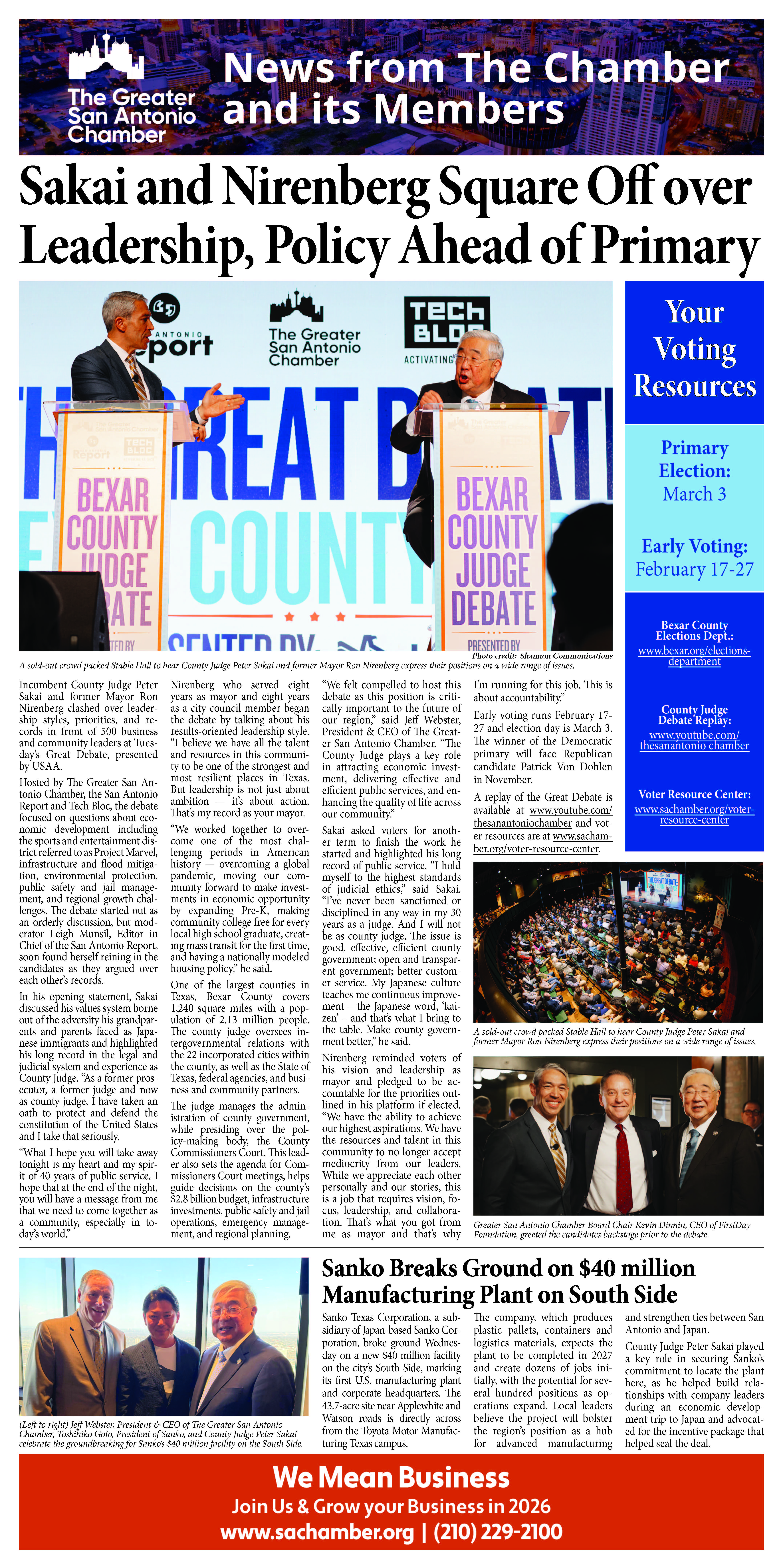 From a spirited debate between Bexar County Judge Peter Sakai and former Ron Nirenberg, to Sanko’s groundbreaking celebration, and Leadership San Antonio’s exploration of the historic 78207 Westside, there’s no shortage of momentum and meaningful moments shaping our community. Read our San Antonio Express-News section every Sunday at your local newsstand!